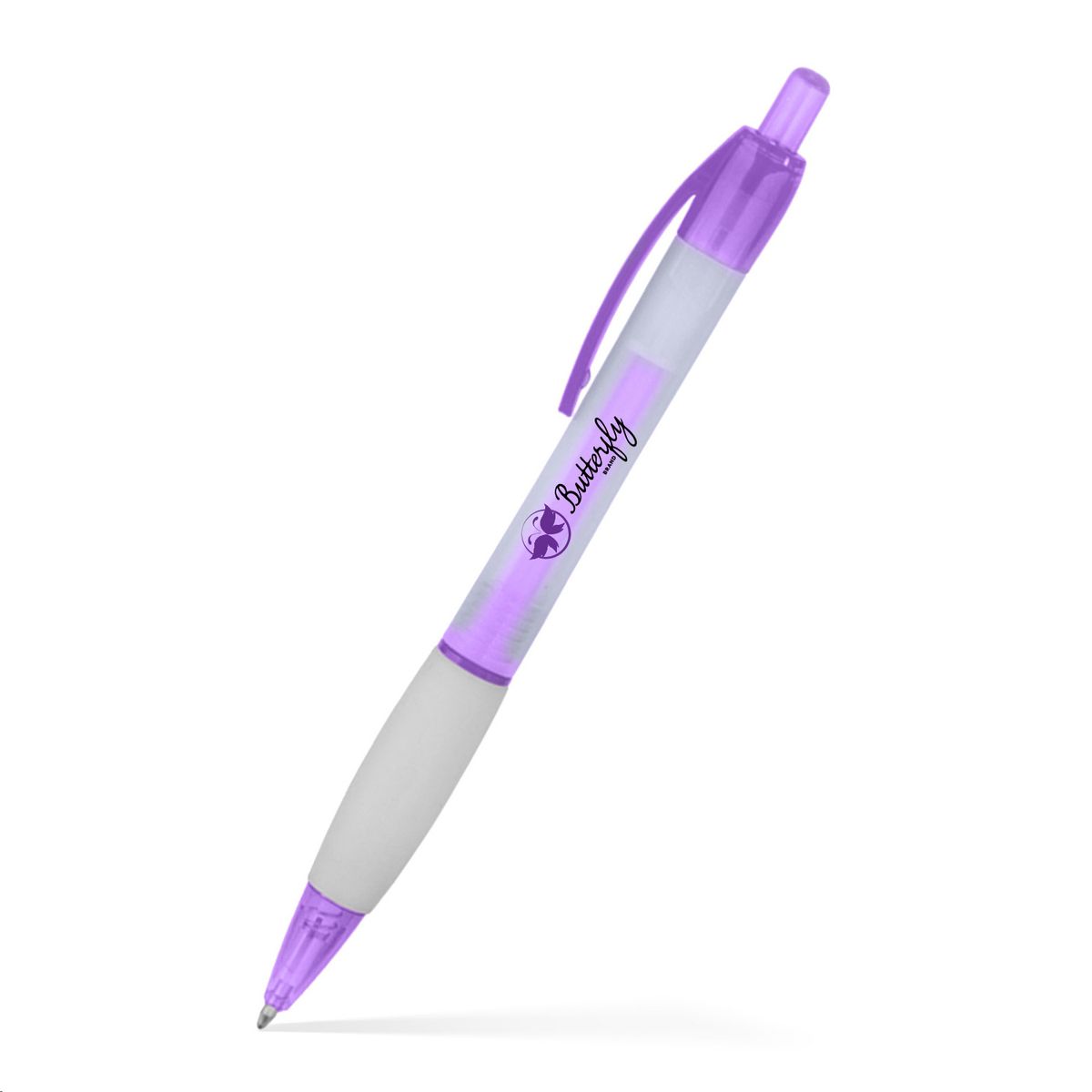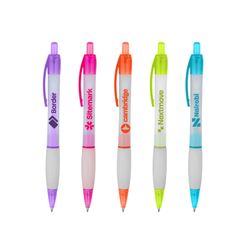 The Hailey Click Pen makes writing fun! Its frosted clear barrel and vibrant accents create a stylish look, while the click-action mechanism ensures smooth operation. A great choice for promotions and daily use. Medium point black ink.